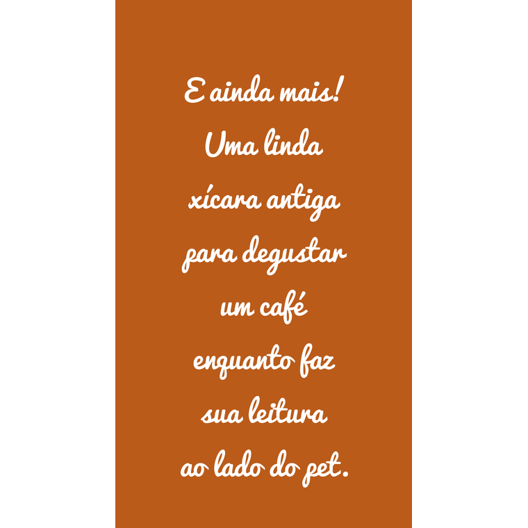 Além de um livro, você vai receber guloseimas e artigos ligados ao mundo do café e chá, para tornar seu momento de leitura mais apetitoso. Quer exemplos? Café ou chá gourmet, cacau e chocolate de qualidade, e ainda, acessórios muito legais. Quer mais? Você ainda vai receber artigos para cuidar e mimar seu pet.
