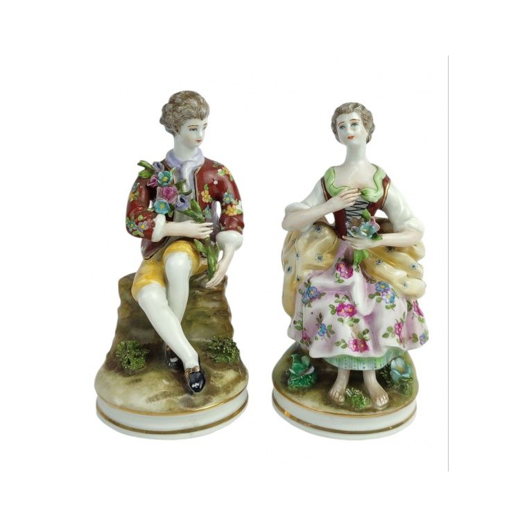 Figura feminina e masculina em porcelana